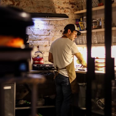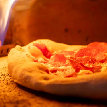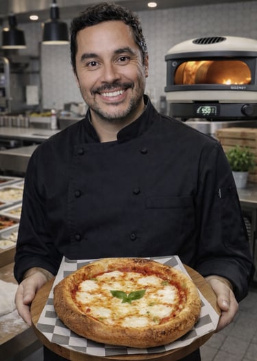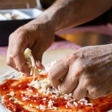 Elaboración en Vivo: Estiramos la masa y preparamos cada pizza frente a tus invitados, garantizando frescura y un espectáculo visual único.